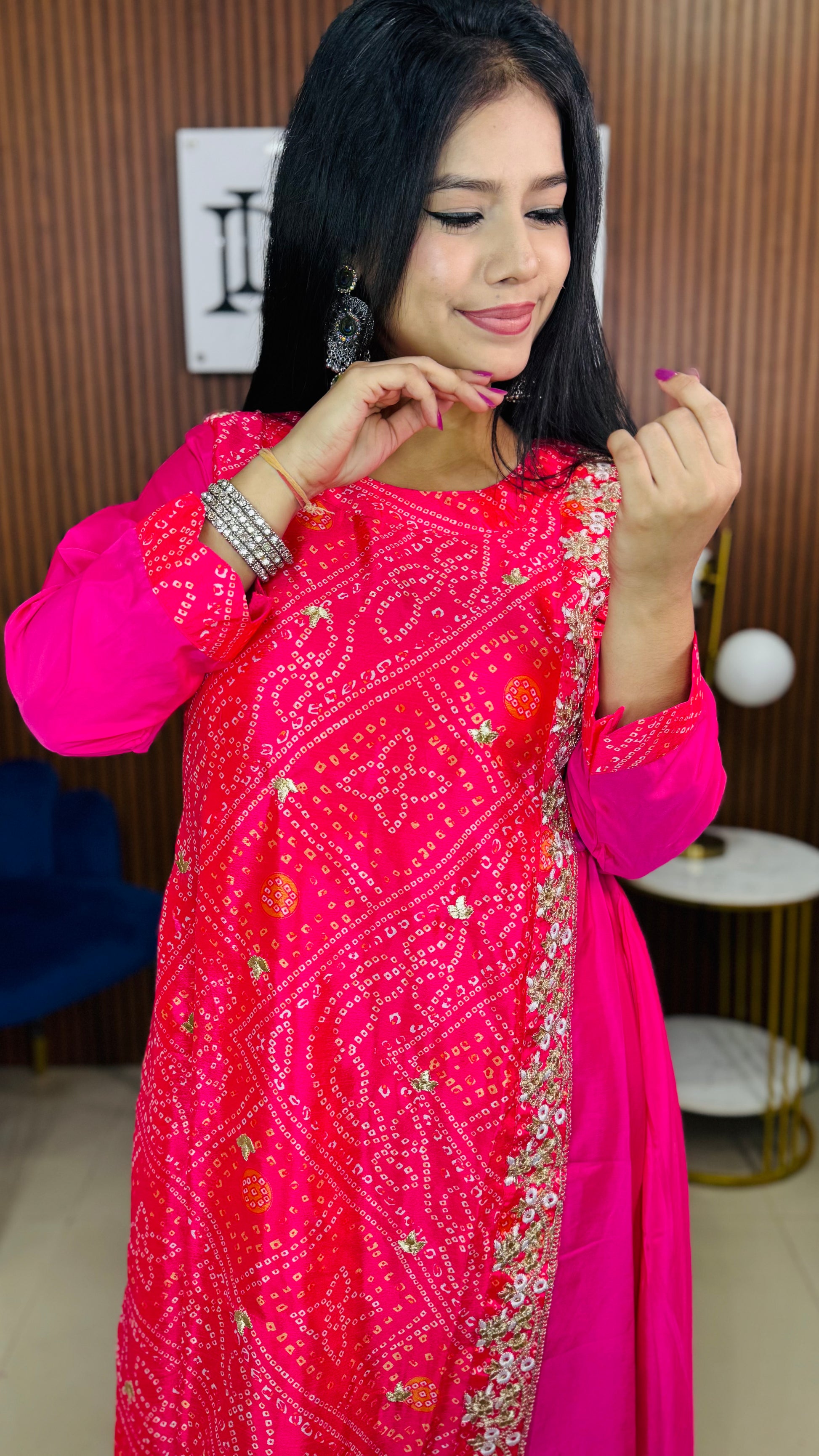 Bandhani Print Anarkali one piece with Embroidered Border | Festive & Wedding Wear